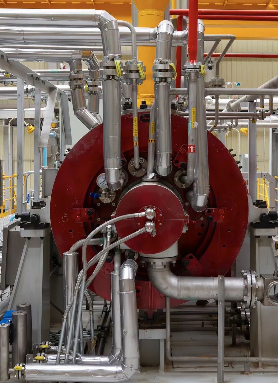按照设计,牙哈储气库使用2台离心式注气压缩机,1台国产、1台进口,机组配置为电机+增速齿轮箱+低压缸+高压缸。2025年7月,全新研发的国产压缩机在牙哈储气库吊装就位,9月,电机吊装就位,10月,压缩机开始安装调试。此次成功投运,有效解决了牙哈储气库的关键配套难题,大幅降低了项目成本,相比引进国外设备,成本降低30%以上。进口压缩机、电机以及配套的干气密封设备目前也已到场就位。